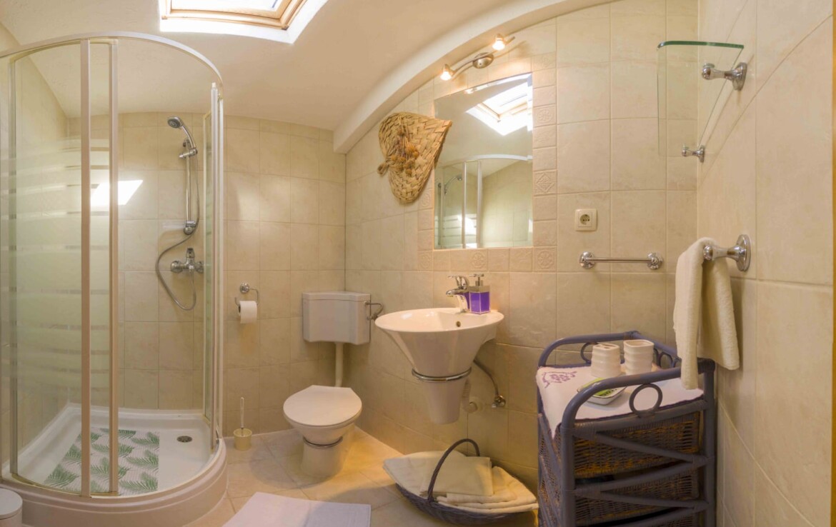 Kuća se sastoji od 3 etaže tlocrtne površine 52 m2. U prizemlju se nalazi studio apartman kapaciteta 4 osobe, a na katu dvoetažni stan sa dvije spavaće sobe.